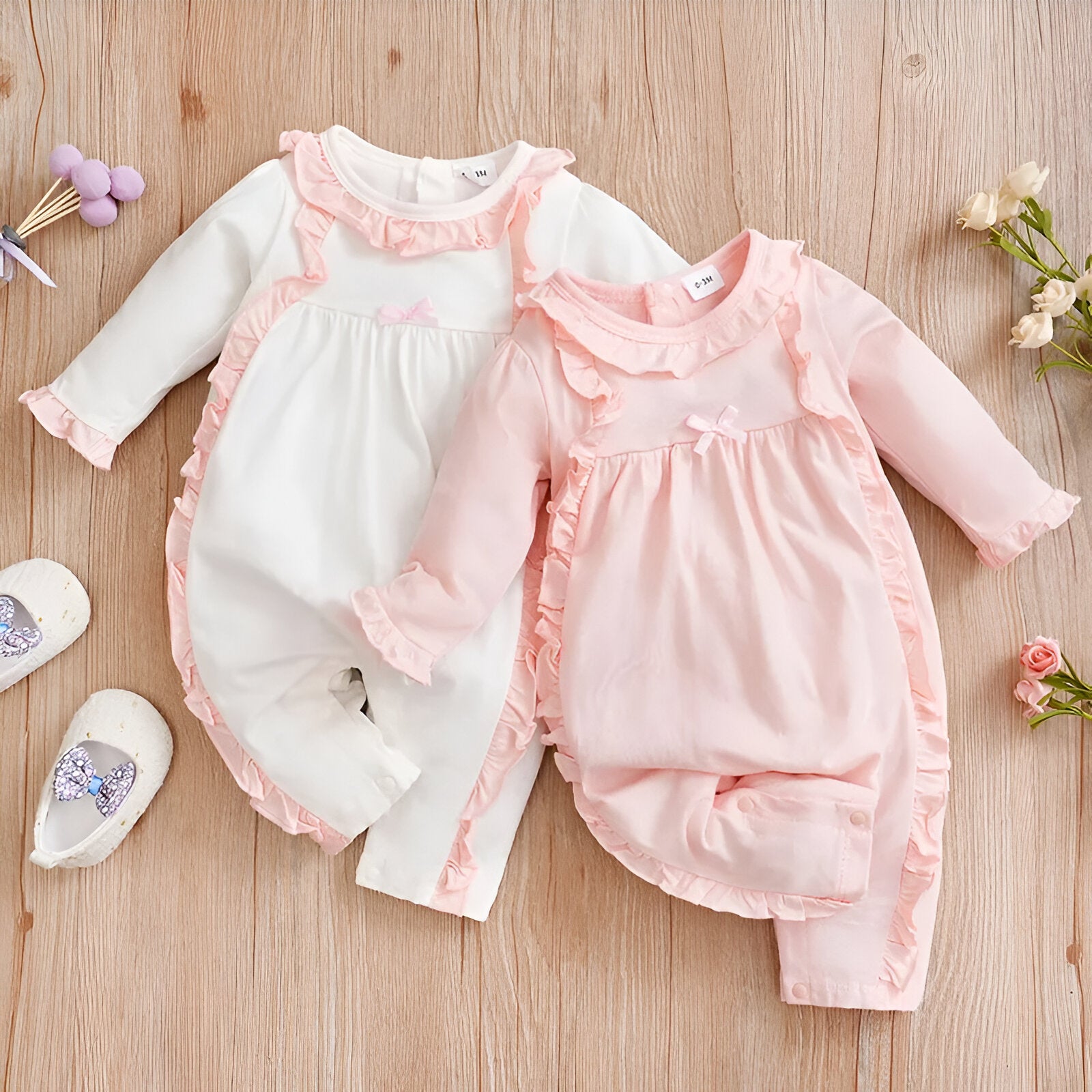 Rompers met strikjes 2 kleuren besteld. Heel erg leuk en goede kwaliteit. Net nog 2 jasjes besteld, beige en roze. Ben benieuwd!